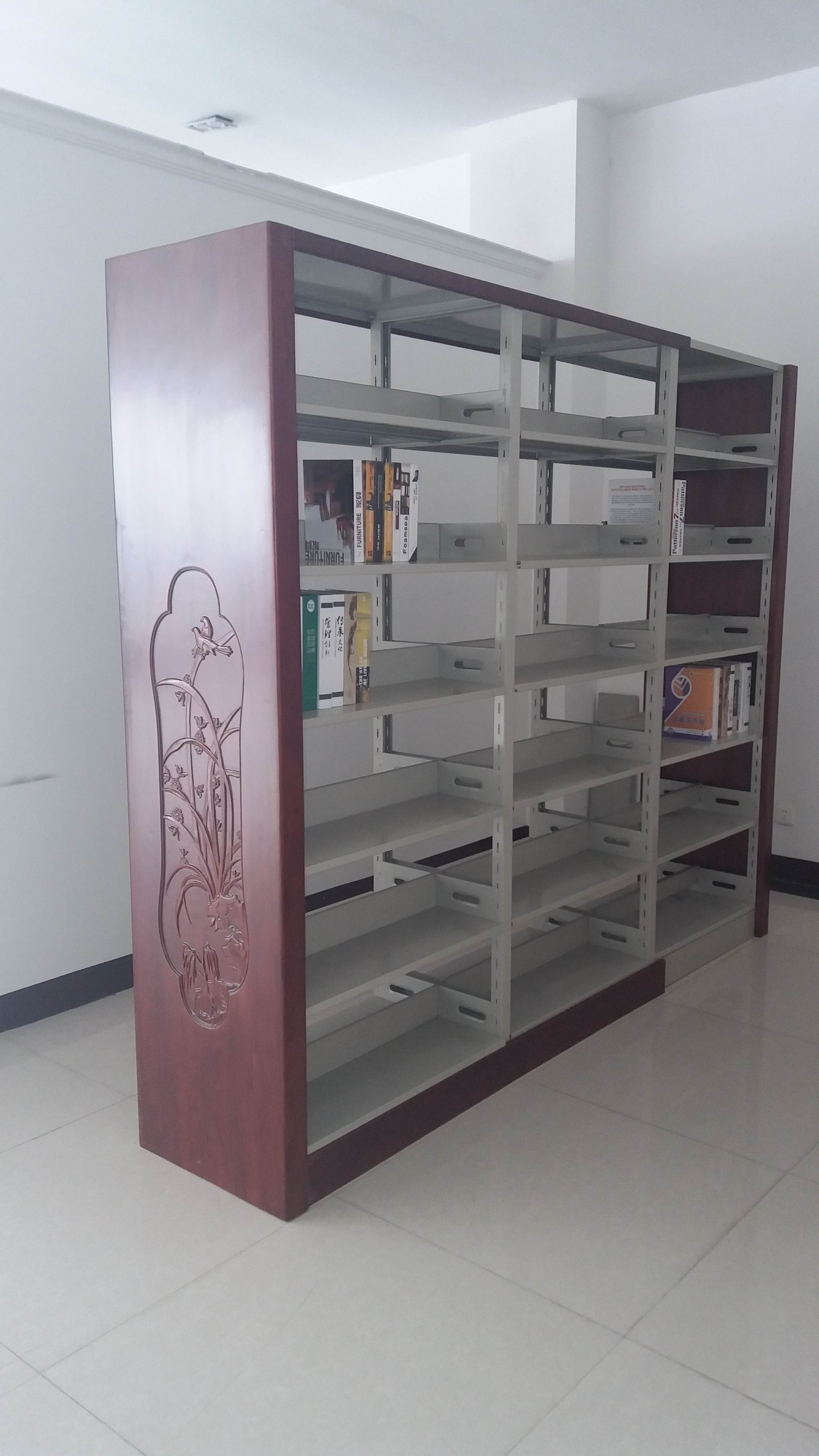 圖書架又稱書架,是用來,常見于圖書館、書店、超市等地方;圖書架款式多種多樣,按材料分一般分為木質圖書架和鐵質圖書架; 木質圖書架擺放的圖書量多,所以里;而鐵質圖書架以擺放、展示相結合,所以常見于書店、超市。 其設計特點為:全組合式結構,組裝拆卸簡便、快捷,應用靈活;柱子一般設有調節孔,可根據實際情況調節層板的間距。